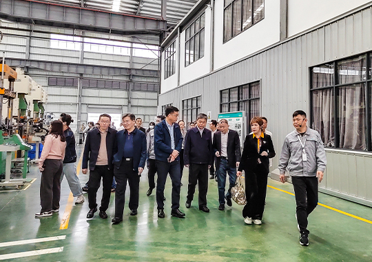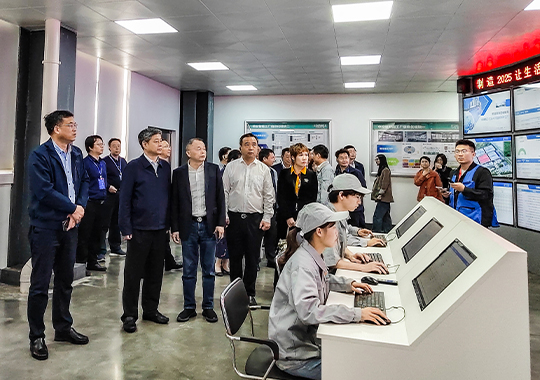 圖為邵陽市委書記嚴(yán)華陪同院士、專家一行蒞臨zoty中欧体育官方网站 智能制造(邵陽)有限公司參觀調(diào)研指導(dǎo)工作。